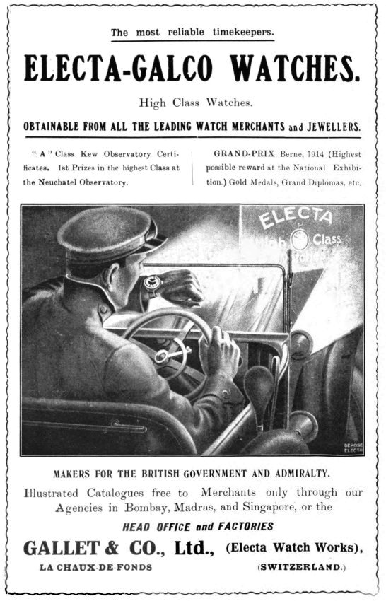 Zdj. 2. Reklama naręcznych zegarków Gallet-Electa z 1918 r.