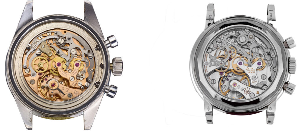 Zdj. Lemania 2320 versus Patek Philippe kal. CH 27-70.